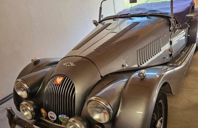 Très belle Morgan +4 gris foncé métallisé, sellerie cuir bordeau, capote noire, 48000 km