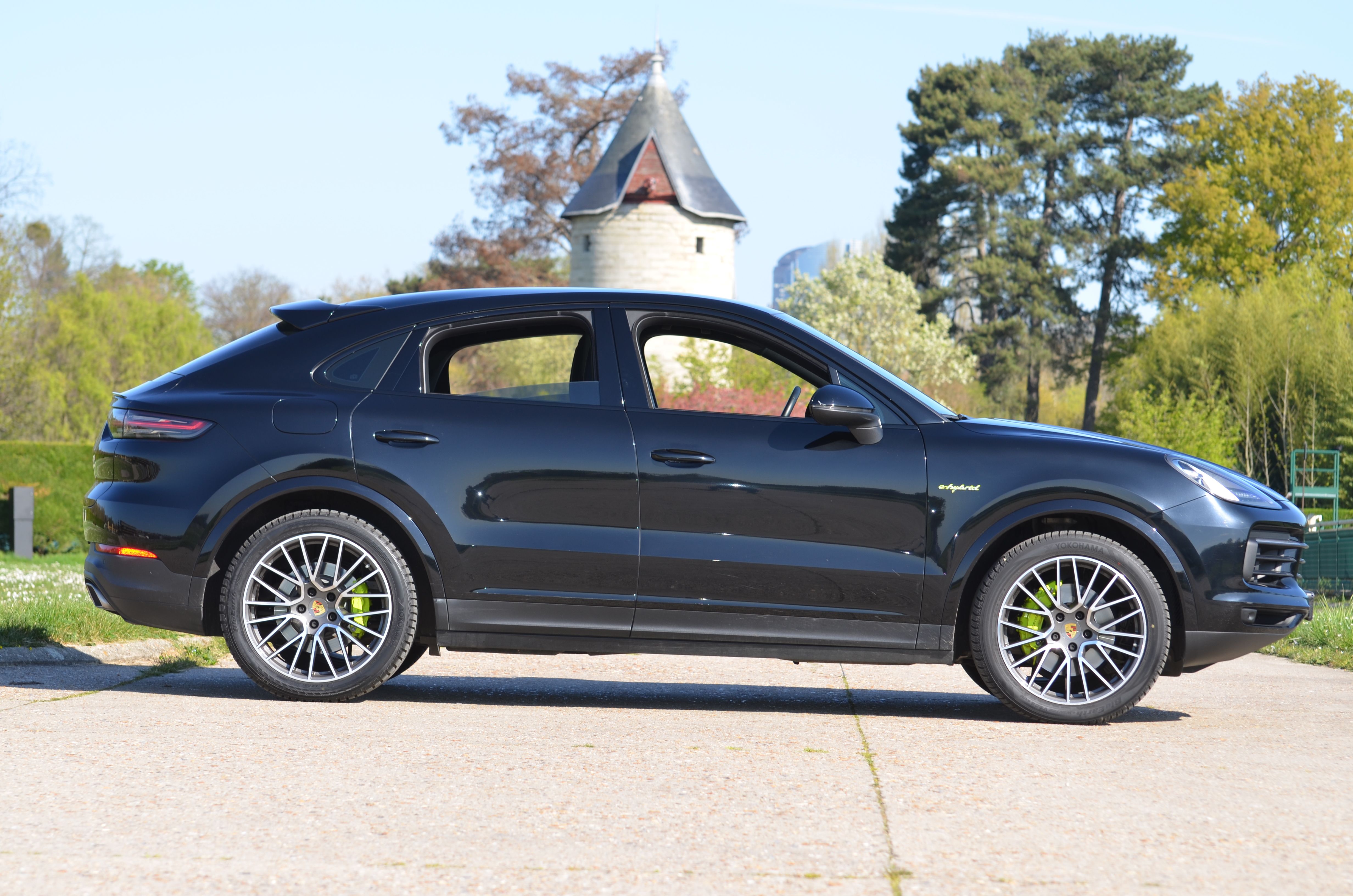 Très beau Porsche Cayenne Coupé E-Hybrid Platinium Edition, 2021, 45000 km, noir métallisé, sellerie cuir noir, carnet d'entretien centre Porsche France, dernier grand entretien 12/2024, 4 pneus 4 saisons