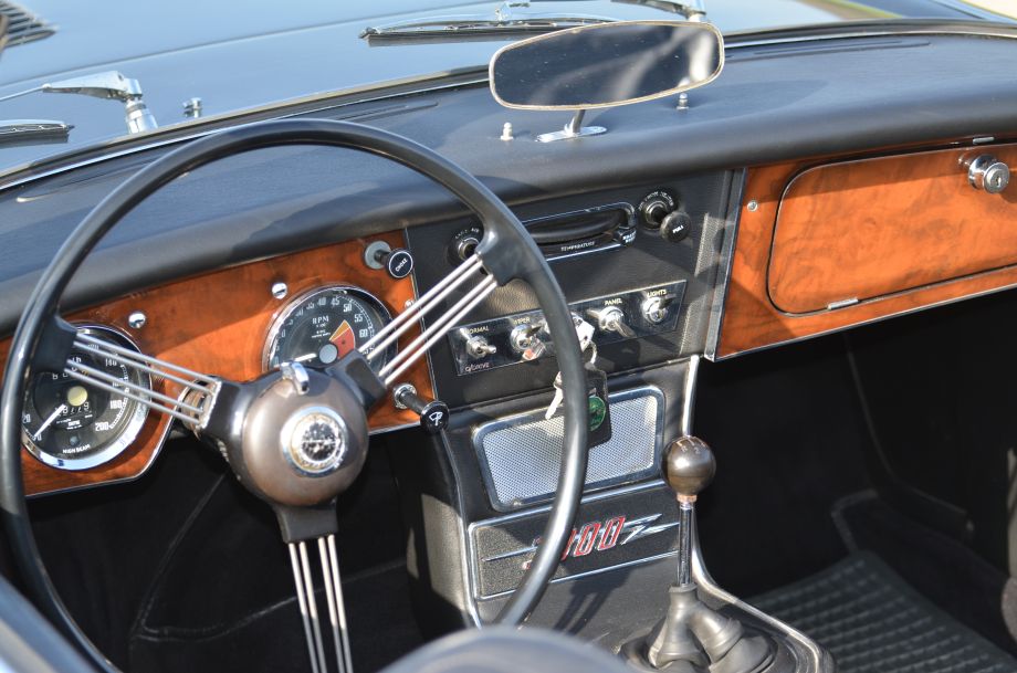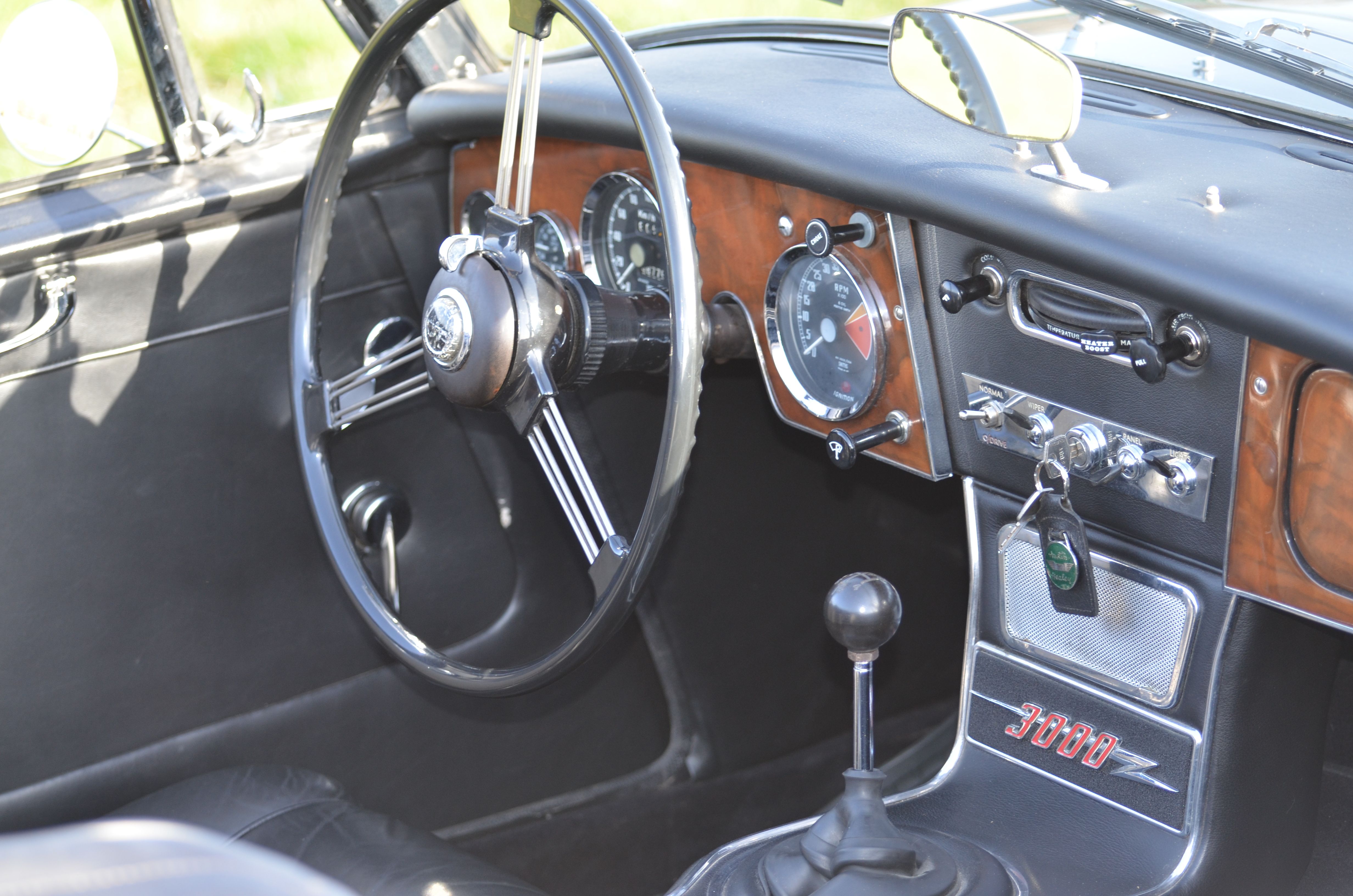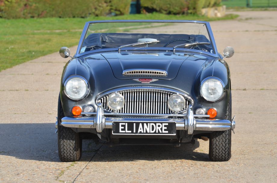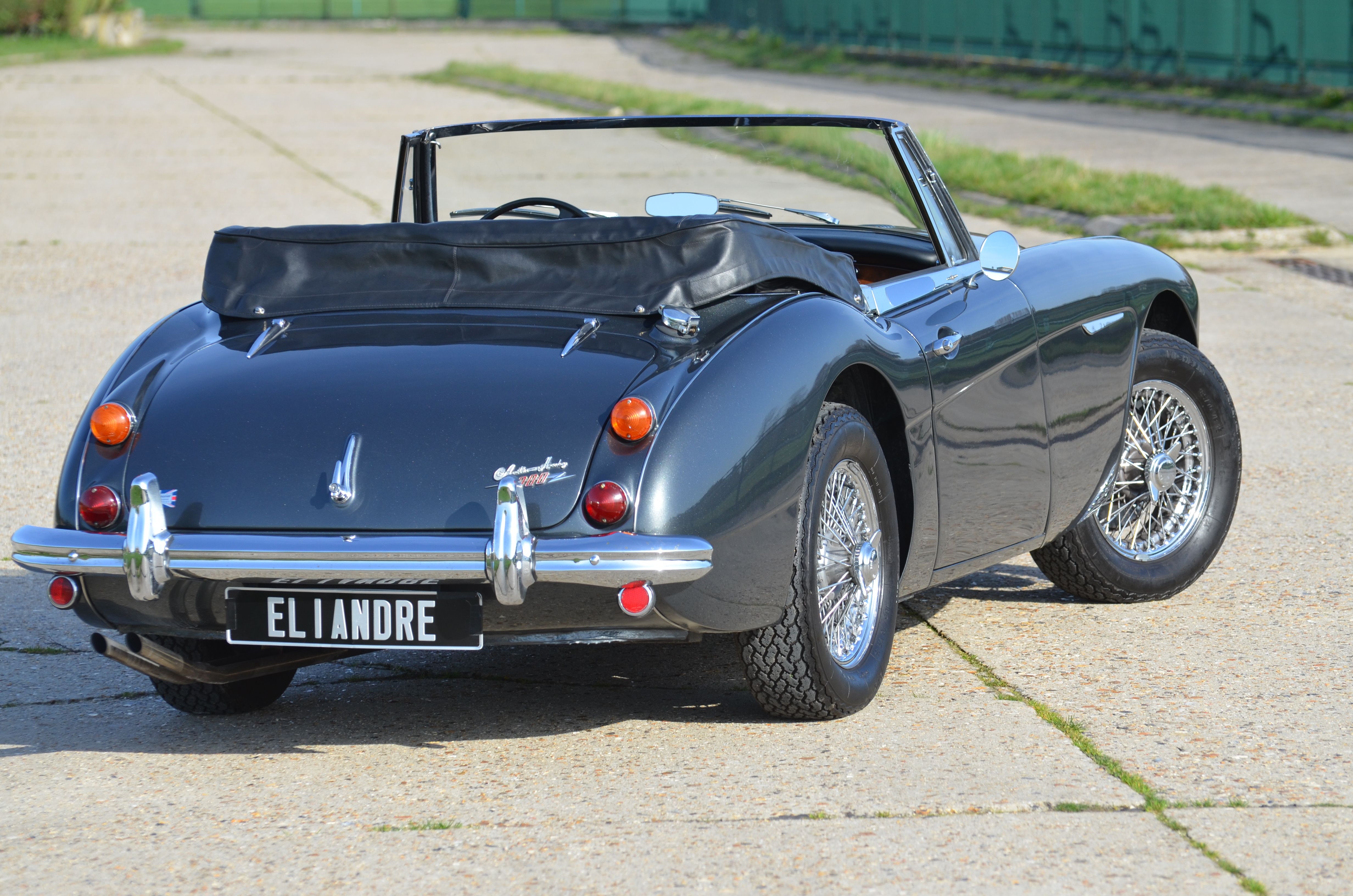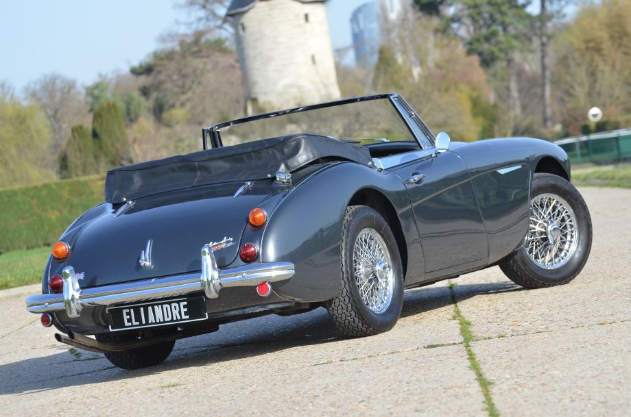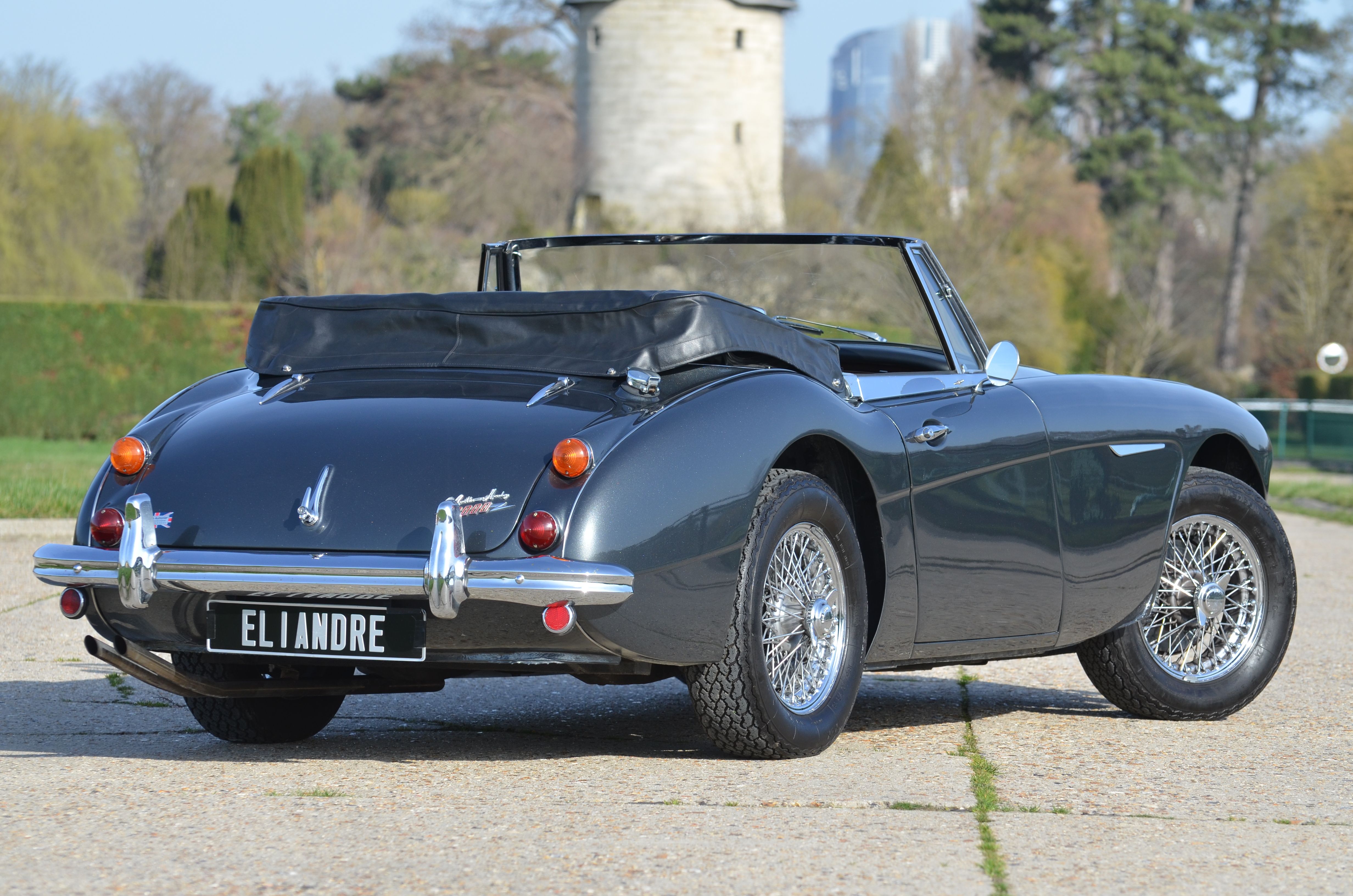 Magnifique Austin Healey BJ8 3000 MkIII date de 1ère mise en circulation 1965, gris Tungsten, sellerie cuir noir, capote noire, roues à rayons, boite de vitesse à 4 rapports + overdrive, dossier de factures d'entretien très complet, voiture de collection en parfait état.