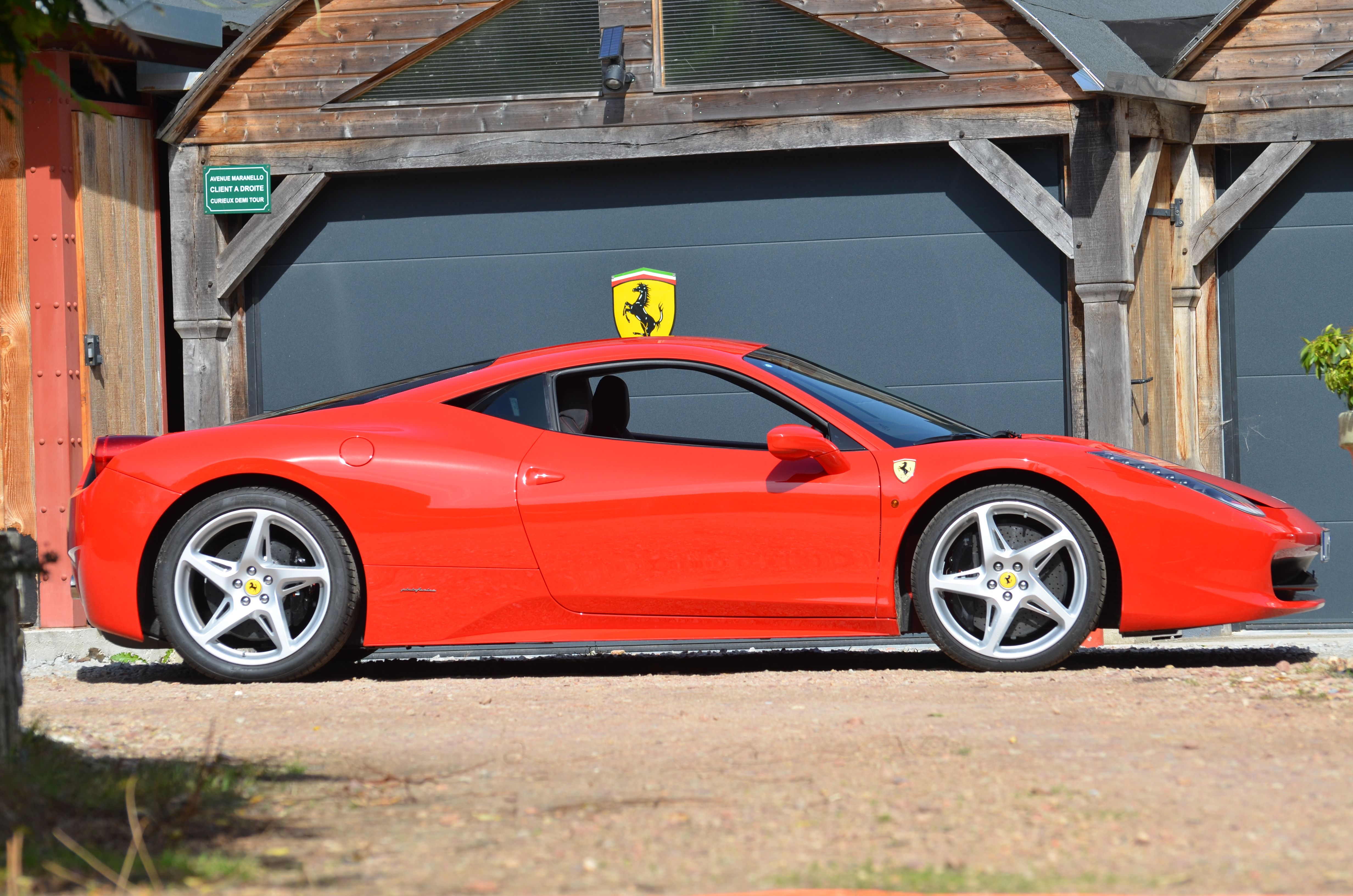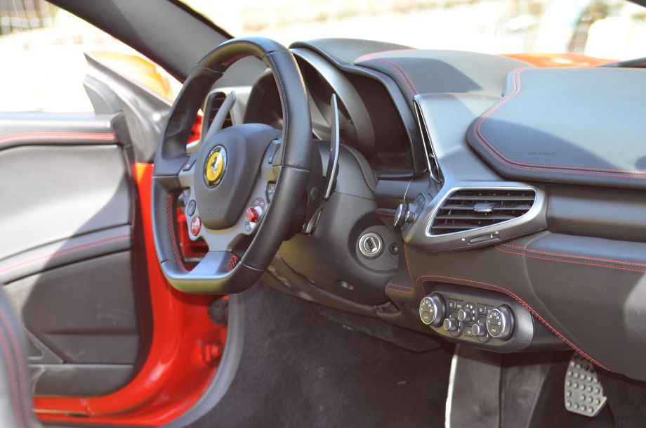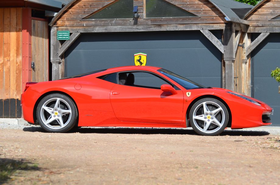Exceptionnelle Ferrari 458 Italia F1 livrée neuve en 08/2011, Rosso Corsa, sellerie cuir Nero avec surpiqûres rouge, carnet d'entretien Ferrari complet, dernier entretien réalisé par Ferrari Pozzi Paris en 05/2025, voiture en parfait état.