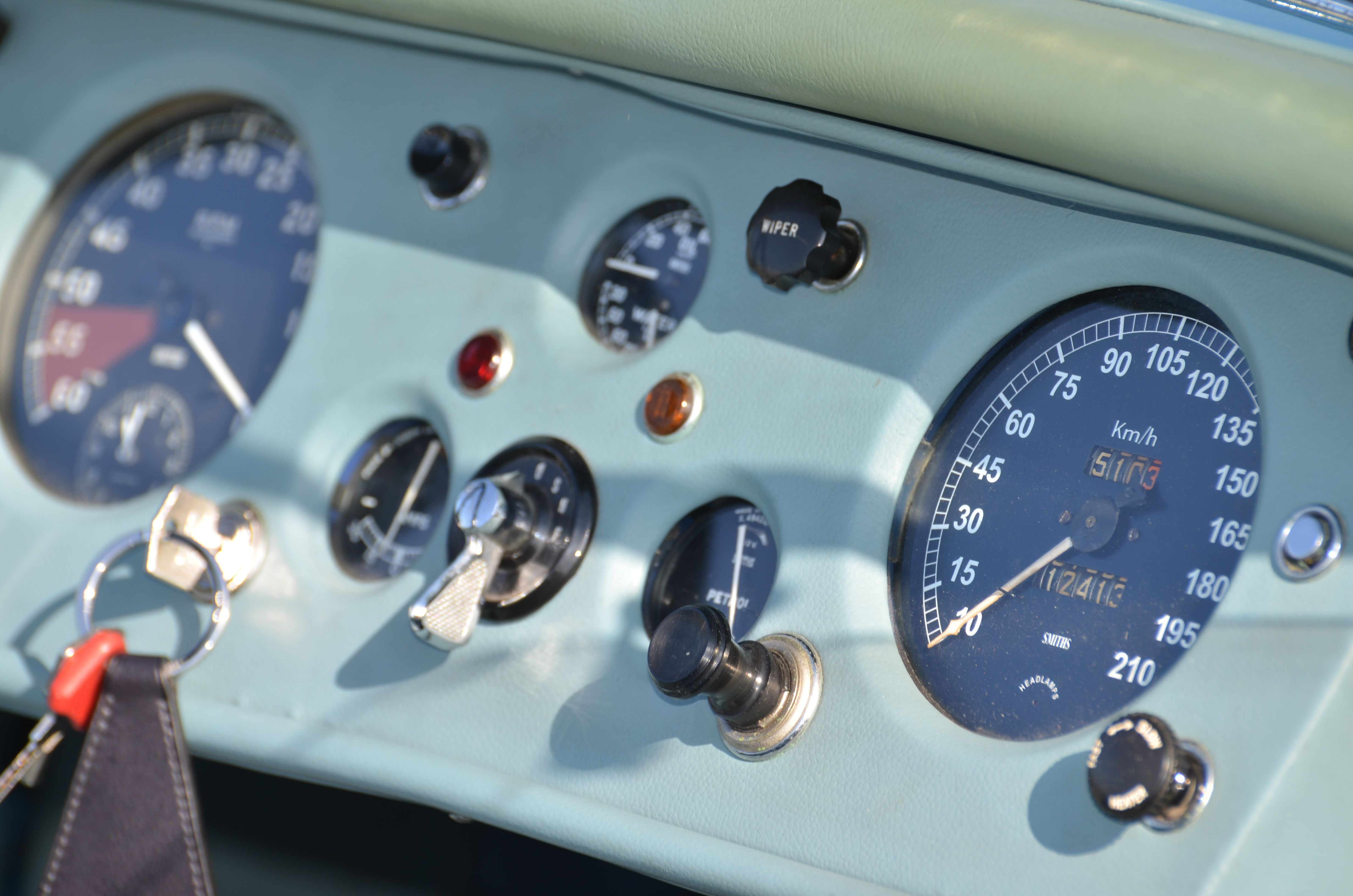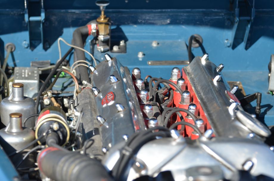Ce modèle Open Two Seater (OTS) est une version Special Equipment (SE) équipée de la fameuse culasse Type C et de deux carburateurs SU 8 qui permettaient d'atteindre la puissance de 213 ch DIN. Le logo sur le coffre arrière rappelle le palmarès des Jaguar Type C aux 24 Heures du Mans.