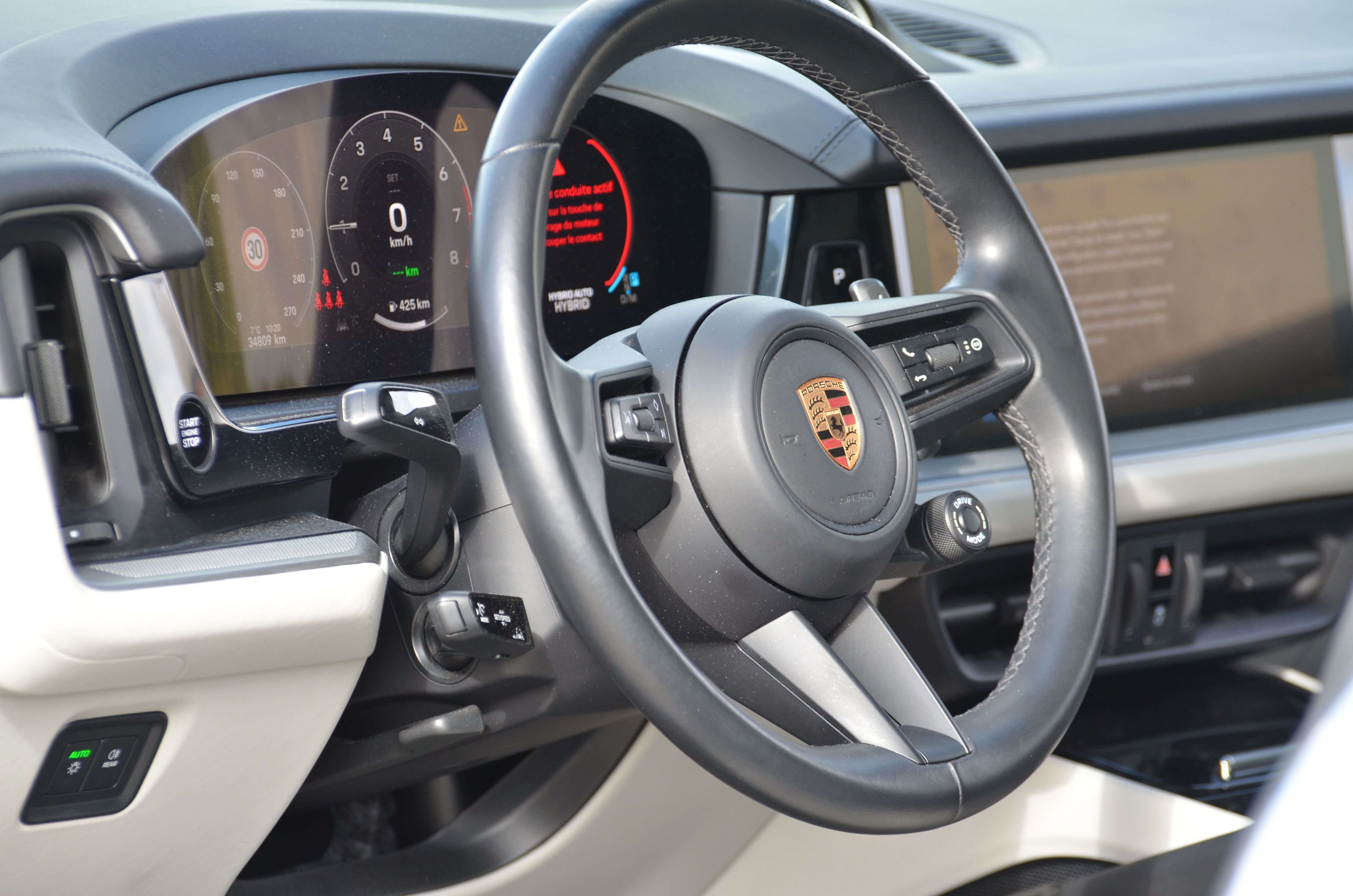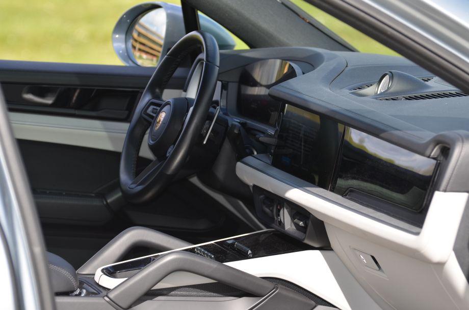 Porsche Cayenne E-Hybrid Coupé 462 ch 1ère main 10/2023, gris clair métallisé, sellerie cuir anthracite & beige, toit panoramique,